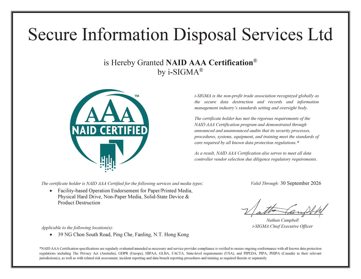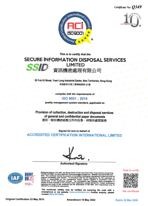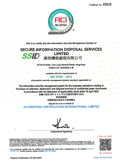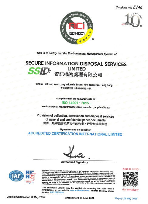 從機密文件銷毁服務到專業減廢顧問服務,資訊機密處理有限公司 (SSID) 致力成為領先廢物管理公司,應用知識及科技為顧客及地球提供更多可持續發展的減廢方案。
